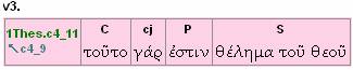 In 4.3 (clause 1Thes.c4_11), the verb ἐστιν, "it is," represents a relational process. What is related are "God's will" and the demonstrative pronoun "this" (the content of "this" is spelled out in subsequent clauses, but it is basically the Thessalonians' holiness).
