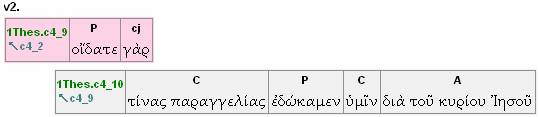 In 1 4.2 (clause 1Thes.c4_9), the verb οἴδατε, "we know,"portrays a mental process of cognition. (What is known is expressed by the c4_10: "what commands we gave you through the Lord Jesus.")